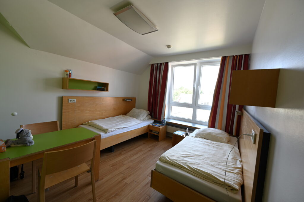 Du wohnst auf der Station der Alleinreisenden mit 1 oder maximal 2 anderen gleichaltrigen Jugendlichen in einem Zimmer (2- und 3-Bett-Zimmer) mit eigenem Bad. Auf der Station werden ca. 30 Jugendliche im Alter von ca. 12 bis 18 Jahren betreut.