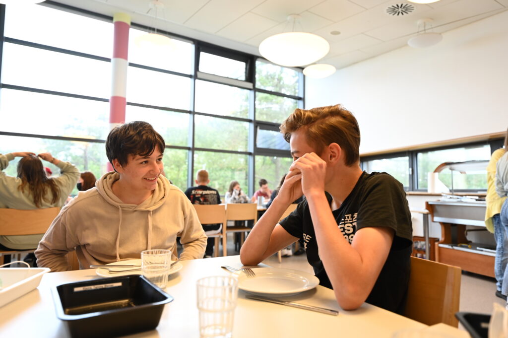 Die täglichen Mahlzeiten nehmen wir gemeinsam im Speisesaal ein. Unser Speiseplan wechselt täglich und du hast mittags die Wahl zwischen zwei gesunden und schmackhaften Gerichten. Wenn du Einschränkungen beachten musst, werden diese selbstverständlich berücksichtigt.