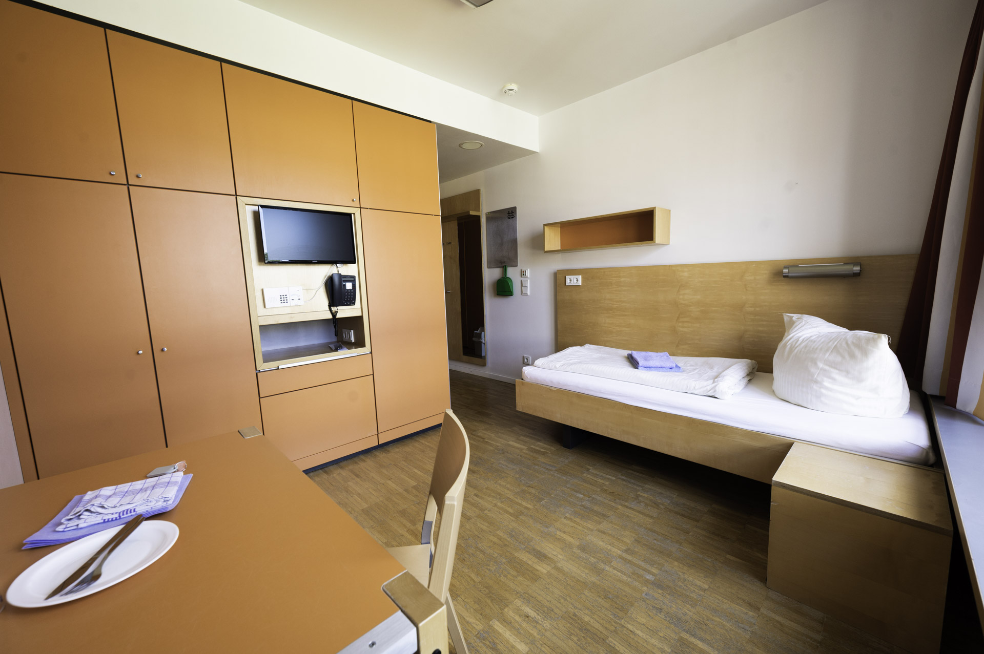 Sie sind mit Ihrem Kind in großzügigen 1- Raum-Appartements mit eigenem Bad untergebracht.