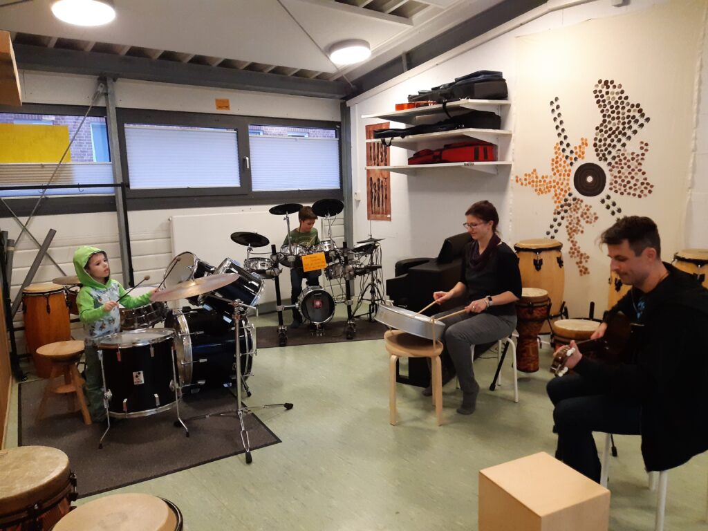 Für Sie als Familie der Familienorientierten Reha (FOR) wird Musiktherapie im Familiensetting angeboten. Ob mit oder ohne musikalische Vorkenntnisse sind Sie eingeladen, gemeinsam Musik zu machen und dabei auf besondere Weise miteinander in Kontakt zu kommen. Vielleicht entdecken Sie dabei ganz neue Seiten an Ihrer Familie? Oder Sie merken, wie neben dem Spaß beim Spiel auf Instrumenten auch etwas für das Leben innerhalb der Familie geübt werden kann, z.B. der Zusammenhalt, das aufeinander Achten, Zuhören, Lachen, miteinander Sprechen und Finden von Kompromissen. Ihre Musiktherapeutin unterstützt Sie gern. Im Musikraum der Fachklinik Satteldüne stehen dafür viele spannende Instrumente bereit.