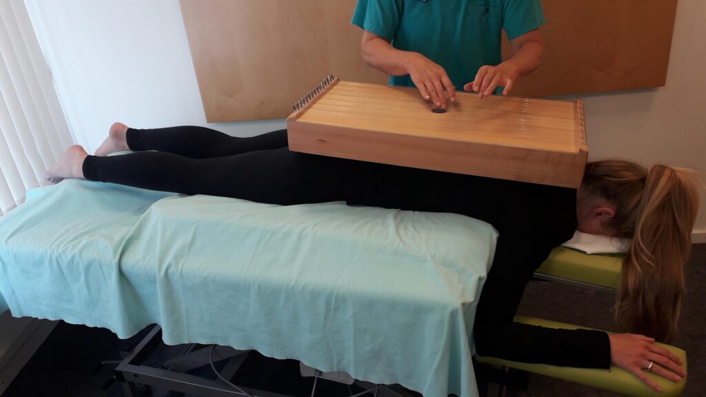 Erwachsene CF-Betroffene oder Begleitpersonen der Familienorientierten Reha (FOR) werden auf Wunsch oder bei entsprechender Indikation Klangbehandlungen mit der gesamten Körpertambura angeboten. Dieser Behandlungsansatz aus dem Bereich der rezeptiven Musiktherapie vereint die Wirksamkeit von einem besonderen Klangerlebnis und der spürbaren Übertragung von harmonisierenden Schwingungen in den Körper. Gerade diese Kombination bietet neben wohltuender Tiefenentspannung die Möglichkeit, Körperwahrnehmung zu unterstützen und Ressourcen zu stärken. Die Klangbehandlungen finden einmal pro Woche im Einzelsetting statt.